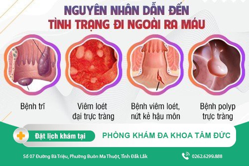 Theo các bác sĩ chuyên khoa hậu môn – trực tràng tại Phòng khám đa khoa Tâm Đức (Số 07 Đường Bà Triệu, Phường Buôn Ma Thuột, Tỉnh Đắk Lắk), có rất nhiều nguyên nhân gây ra tình trạng đi ngoài ra máu cụ thể do bạn bị táo bón nặng hoặc mặc quần áo chật chội, có quan hệ bằng hậu môn khiến lớp niêm mạc ở hậu môn bị tổn thương. Tuy nhiên, tất cả các nguyên nhân này sau 2-3 ngày sẽ tự khỏi.